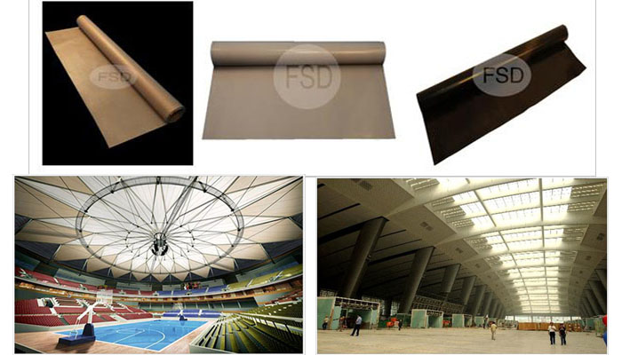 建筑屋面防水、屋頂防水布、帳篷、建筑頂棚、遮蓋篷布、船上蓋布、防水防火膜材,各種運(yùn)動(dòng)場所的頂蓬、車站亭蓬、陽傘、景觀蓬等。