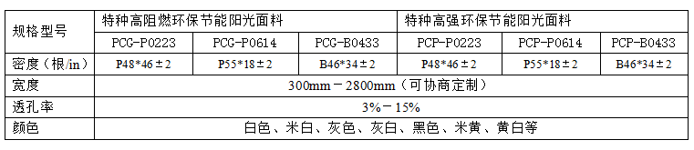 普絲綸(PLASELUN )PCG-C、PCG-F、PCP-C系列特種功能性遮陽(yáng)(窗簾)(陽(yáng)光面料)不同于傳統(tǒng)的各式遮陽(yáng)簾,窗簾;選用超細(xì)、高強(qiáng)、高阻燃等特種功能纖維,采用德國(guó)技術(shù),德國(guó)設(shè)備,經(jīng)多道特殊嚴(yán)密工藝制備而成.該遮陽(yáng)卷簾能有效阻隔太陽(yáng)光和紫外線(xiàn);過(guò)濾昡目日光,獲取自然光線(xiàn),提高視覺(jué)舒適度;有效隔阻熱輻射,高效環(huán)保節(jié)能,改善室內(nèi)品質(zhì)有益于健康,遮陽(yáng)的同時(shí)阻隔紫外線(xiàn)防止室內(nèi)裝飾材料和物品的褪色和損壞。